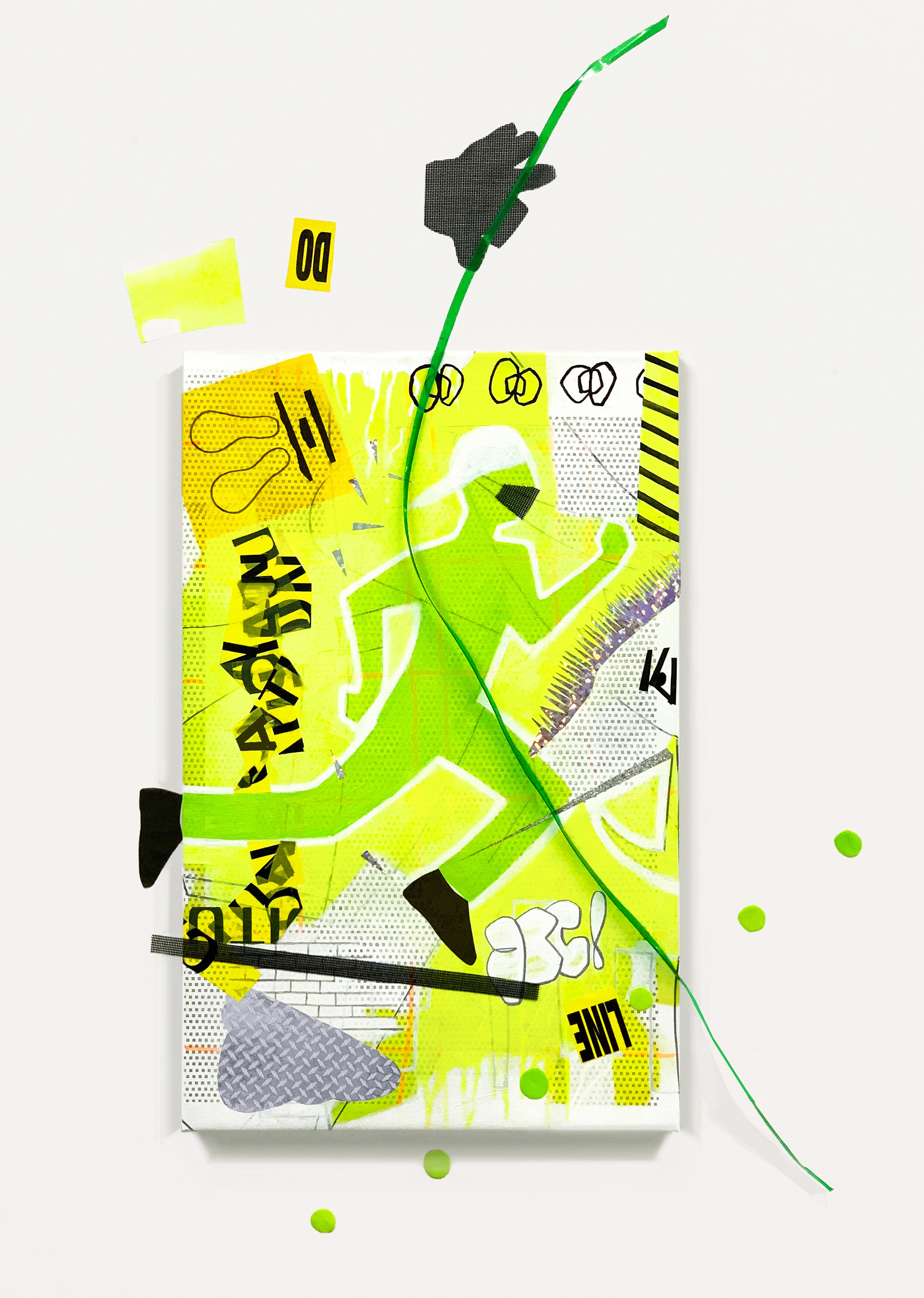 I make boldly colored collage and assemblage paintings, taking cues and materials from the New York City streets I traverse every day. - JR